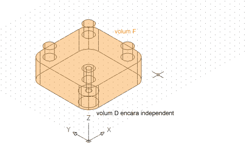 | Ara copieu tres vegades el volum D a les tres cantonades inferiors lliures del volum F i resteu-les a aquest amb l'ordre Diferencia (F - (D, D', D'', D''') = G). | |