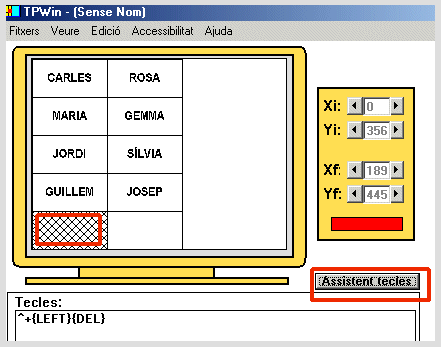 Fareu una pràctica molt senzilla i bàsica sobre l'aprenentatge de la confecció de teclats virtuals amb el Tpwin. Podria ser el punt de partida, un model, per a la creació de plafons de comunicació més complexos i de gran utilitat per a l'alumnat amb problemes de comunicació. Creeu un teclat virtual per al treball dels noms de l'alumnat d'una classe,