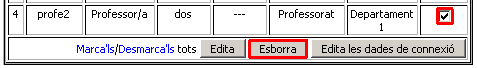 L’eliminació d’usuaris es du a terme d’una forma similar a l’edició: seleccioneu l’usuari/ària i cliqueu a Esborra.