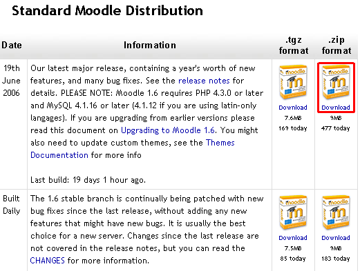 Tanmateix, en el cas d’instal·lar un Moodle per utilitzar-lo en un centre docent pot ser convenient utilitzar la darrera versió estable per beneficiar-se de les novetats. Per aquesta raó, tot seguit s’il·lustra com obtenir-lo des de la pàgina web, tot i que es recomana realitzar el curs amb la versió proporcionada en els materials.