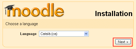 A la pàgina inicial us demanarà que escolliu la llengua amb què es farà la instal·lació. Escolliu el català. A continuació feu clic a Next.