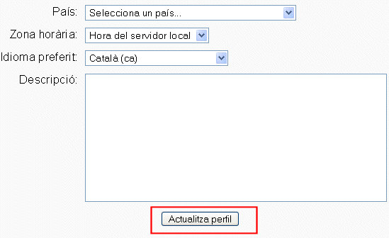 Ompliu la resta de camps segons les vostres dades personals. Cal que ompliu tots els camps perquè si no ho feu el sistema us retornarà a la mateixa pàgina perquè les introduïu. Opcionalment podeu pujar la vostra fotografia.
