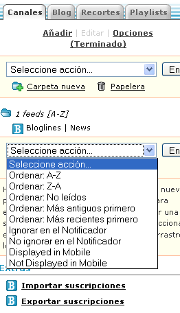 Aquí accedireu a més possibilitats encara. La més interessant de totes és la possibilitat de crear carpetes per tal de classificar les vostres sindicacions a partir dels vostres interessos o preferències.