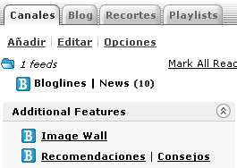 Bloglines ofereix altres serveis a més d’aquest (com per exemple la possibilitat de crear-nos un bloc). A títol personal, si us agrada, podeu optar-hi. Ara bé, pel treball escolar l’opció que us recomanem és obrir-vos-en un a través de l’aplicatiu XTECBlocs (http://phobos.xtec.cat/blocs), ja que així les dades i les feines que hi dugueu a terme estaran hostatjades en un servidors sota legislació espanyola. Així mateix, estarà garantida la traducció de l’aplicació al català.