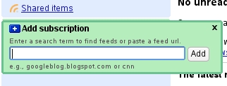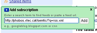 Ara, aneu a l’entorn del Google Reader i afegiu-hi aquesta sindicació. Només cal enganxar-hi aquesta adreça que acabeu de copiar.