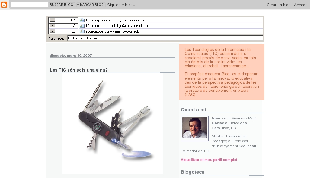 De les TIC a les TAC (http://ticotac.blogspot.com/). Bloc de Jordi Vivancos i Martí.