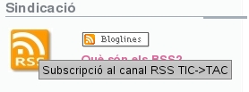 En aquest cas el procés és molt similar. L’única cosa que veiem diferent és que disposa d’una icona de sindicació específica per a Bloglines. Així, aquelles persones que tenen compte a Bloglines encara ho tenen més fàcil, si pot ser, el procés de sindicació.