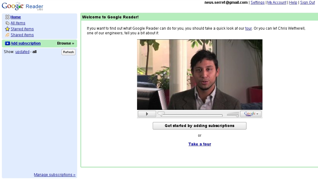 Goodle Reader. Una vegada us hi donem d’alta, rebreu un correu per tal