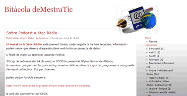 Podem veure-hi l’última notícia publicada al capdamunt de la columna principal. Si anem baixant, veurem la resta d’articles ordenats de forma cronològicament inversa i tot això lligat amb intervencions dels visitants al lloc. A més a més, podem obtenir enllaços a llocs d’interès educatiu, idees per aplicar a l’aula, experiències, etc.