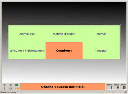L’objectiu d’aquesta pràctica és crear un puzle de modalitat d’intercanvi en què el contingut de les caselles és text i que cal ordenar per formar una frase, en aquest cas una definició.