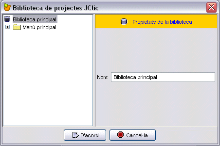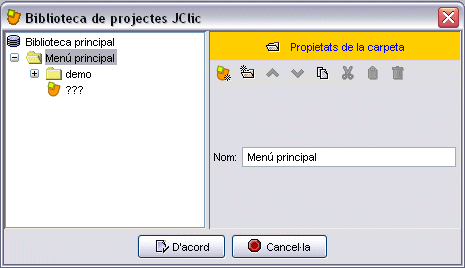 Des de la finestra Biblioteca de projectes JClic que s’ha obert podeu organitzar en carpetes els diferents botons d’accés als projectes.