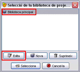 Aneu al menú Eines|Biblioteques. Si teniu més d’una biblioteca seleccioneu a la finestra de Selecció de la biblioteca de projectes la Biblioteca principal i feu clic al botó Edita.