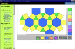 trobareu algun aspecte que treballa el mosaic lligat a l'entorn. Podeu complementar el treball d'enrajolar la pantalla amb activitats manipulatives amb polígons de plàstic, de fusta... Un programa molt interessant per dissenyar enrajolats és el que ha creat Ramon Masip. Podeu treballar-hi directament des de la web: http://www.xtec.net/~rmasip1/mosaics.htm. |