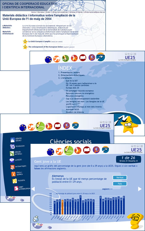 A més d'aquesta web institucional, teniu altres llocs adreçats més específicament a l'àmbit educatiu que us aportaran idees per treballar diversos temes amb els alumnes. La web Oficina de Cooperació Educativa i Científica Internacional del Departament d'Educació és a l'adreça http://www.xtec.cat/ofinternacional/cdue25.htm. Cliqueu sobre de l'enllaç La UE s'amplia. Accedireu a un material didàctic molt interessant, ampli i ben presentat que fins i tot té activitats específiques per àrees. Us convidem a conèixer-lo i veureu que en trobareu immediatament utilitat. |