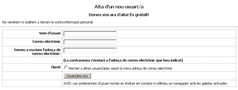 | Us proposem que us creeu un compte nou per tal d'accedir-hi com a usuaris registrats. | ||||||||||