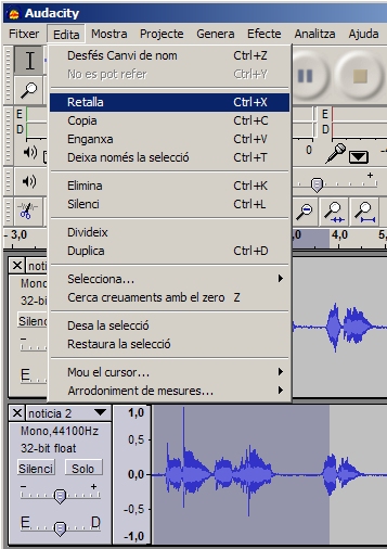 Aquest procediment de construcció d'un fitxer sonor a partir de la suma d'altres fitxers té moltes possibilitats a l'aula. Podeu confeccionar, després d'un repartiment de tasques, un senzill radionotícies a partir de les notícies de diversos alumnes. D'altra banda, la manipulació digital de la pròpia veu (o de la veu dels altres) és un recurs que agrada molt l'alumnat. |