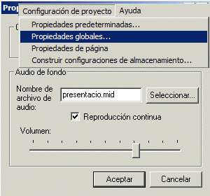 del proyecto | Propiedades globales podeu triar un fitxer de so
