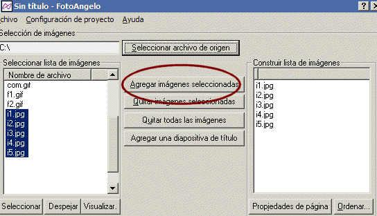 seleccioneu les imatges. Agregueu-les al projecte amb i ordeneu-les amb