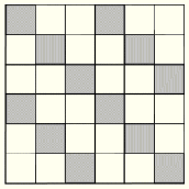 En el segon exemple que us proposem veureu una manera de dibuixar un engraellat 6 x 6 amb algunes caselles acolorides, com aquest: