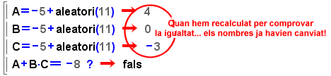 I llavors, ai las!, si escriviu el resultat i feu que es recalculi, canvien els nombres! Aquesta és la particularitat de la Wiris: en cada recàlcul es regeneren els nombres aleatoris.