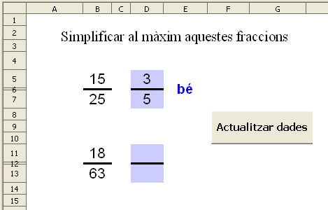 2. Inserir un quadre de text on hagi escrit: Simplificar al màxim aquestes fraccions.