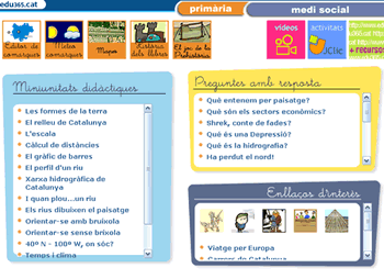 Aquesta pàgina ha de ser de referència per a tots els que treballeu l’àrea de ciències socials. Fixeu-vos en les MUD, miniunitats didàctiques, activitats pensades com a reforç o ampliació, segons el cas, dels continguts treballats a l’aula ordinària. Obriu-ne algunes: “Les formes de la terra”, “El relleu de catalunya” …, i comproveu com s’adapten perfectament als continguts de l’àrea.