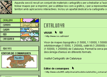 S’obre la secció dedicada exclusivament a Catalunya, però val la pena fixar-se en la part esquerra, on observareu que podeu trobar-hi, també, mapes d’Espanya, d’Europa, del món i cartografia diversa.
