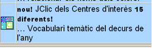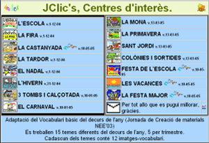 Aneu, directament, a l’adreça següent, on un equip de mestres ha fet un treball meravellós recollint en una sola pàgina tot un conjunt d’activitats que serveixen per treballar aspectes de totes les àrees curriculars: http://www.xtec.cat/~mfortun4/jclics.htm
