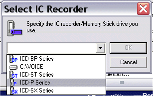 Si s’utilitza per primera vegada surt un missatge que demana a quina sèrie pertany la gravadora. Cal escollir ICD-P Series com mostra la imatge.
