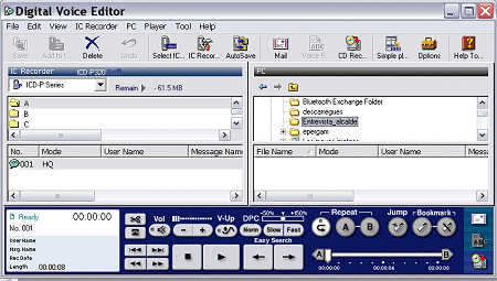 La part dreta de la pantalla mostra el vostre Ordinador. Cal seleccionar la carpeta on vulgueu desar els arxius de so. Aquesta selecció de carpeta es fa des de la part superior dreta. A la part inferior dreta, visualitzeu els arxius que importeu des de la gravadora.