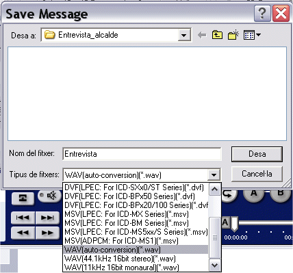 Doneu un nom a l’arxiu, per exemple “entrevista” i es desa en format *.wav a la carpeta escollida de l’ordinador.