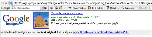 Esculliu la imatge adequada i cliqueu, amb el punter del ratolí, al damunt. La pàgina del “Google” canvia i es divideix en dues parts, la superior amb la imatge en petit i la inferior amb la pàgina del web on es troba l’esmentada imatge.