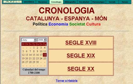 Model història personal crono-personal.rtf, des del naixement del noi o la noia. Si voleu, podeu ampliar la cronologia fins a la data del naixement dels avis i de les àvies. D’aquesta manera podeu estudiar un període històric més ampli. Relacioneu els fets de la història familiar i/o personal més importants, amb els fets històrics més rellevants. Podeu fer que els vostres alumnes omplin, en grup, la columna corresponent a “societat”. En aquesta columna podeu incloure també els fets locals més rellevants. Per consultar els fets polítics, econòmics i culturals més rellevants de Catalunya, d’Espanya i del món, podeu consultar a Buxaweb de Julià Buxadera a: http://www.xtec.cat/~jbuxader/historia/cronologia/index.htm