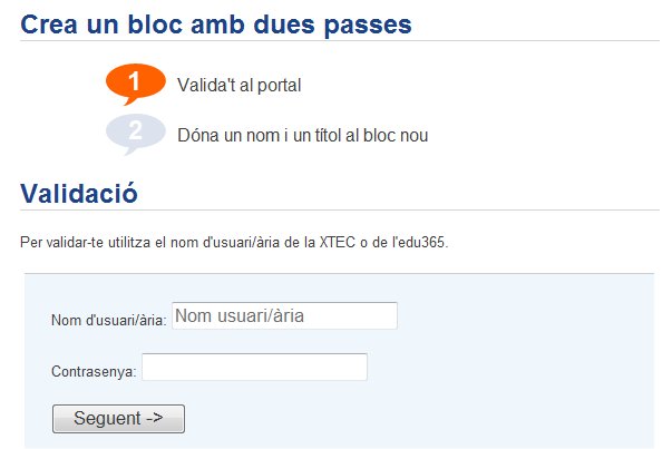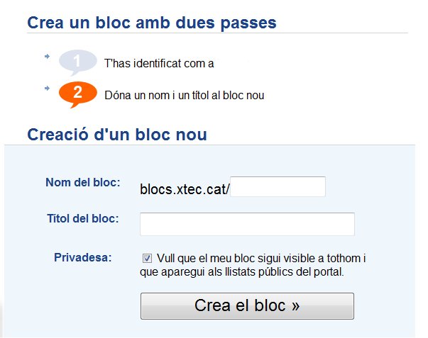 Per a crear un bloc la XTECBlocs us ho posa fàcil, només cal disposar d’un identificador de la Xtec i accedir a aquesta pàgina http://blocs.xtec.cat/.