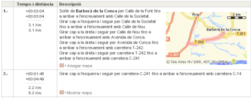 Anoteu també el nom de les carreteres per on es passa (T-242, N-240, C-14…).