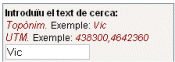 La localització d’un punt es fa mitjançant un cercador, on s’introdueix un topònim o una coordenada UTM.