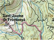Useu la llegenda per saber per quin tipus de carreteres discorre l’itinerari i quines altres vies de comunicació observeu al llarg del mateix i de quina manera es marquen els límits entre municipis, així sabreu si es travessa algun altre municipi que no s’hagi esmentat.
